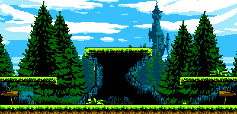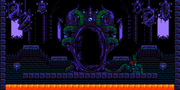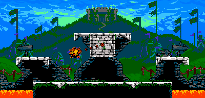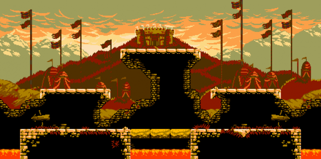 Seems like a great place to reminisce. There’s no time for that! Falling into a pit is easy here, be sure to hold your ground! The right side can be a cornering trap or a platforming reprieve. Use it wisely!