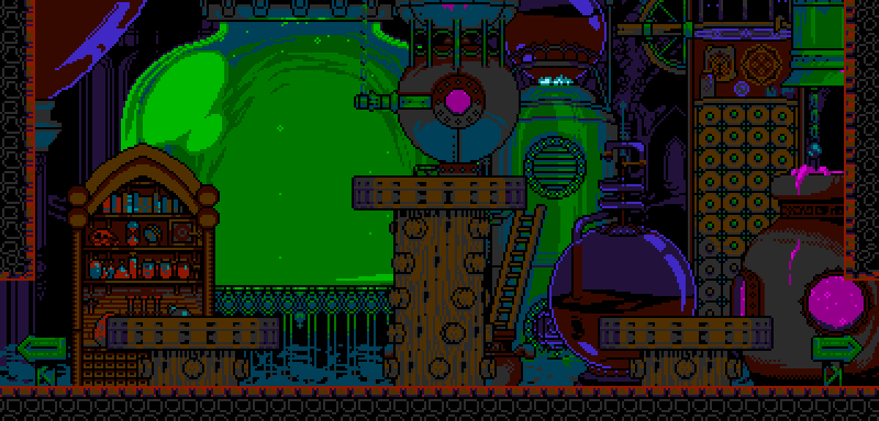 Something is brewing down here…The potion pillars will change their arrangement with consistent timing. This battlefield is all about using height to your advantage, but the screen wrap always gives you an escape!