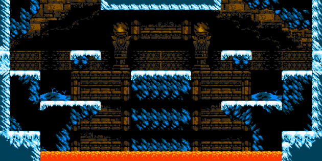 The cold, slow grind of progress continues. Every 12 seconds, the stage’s shape will change due to the moving glaciers. When the ground starts shaking, get ready to move to avoid being crushed or swallowed up by lava!