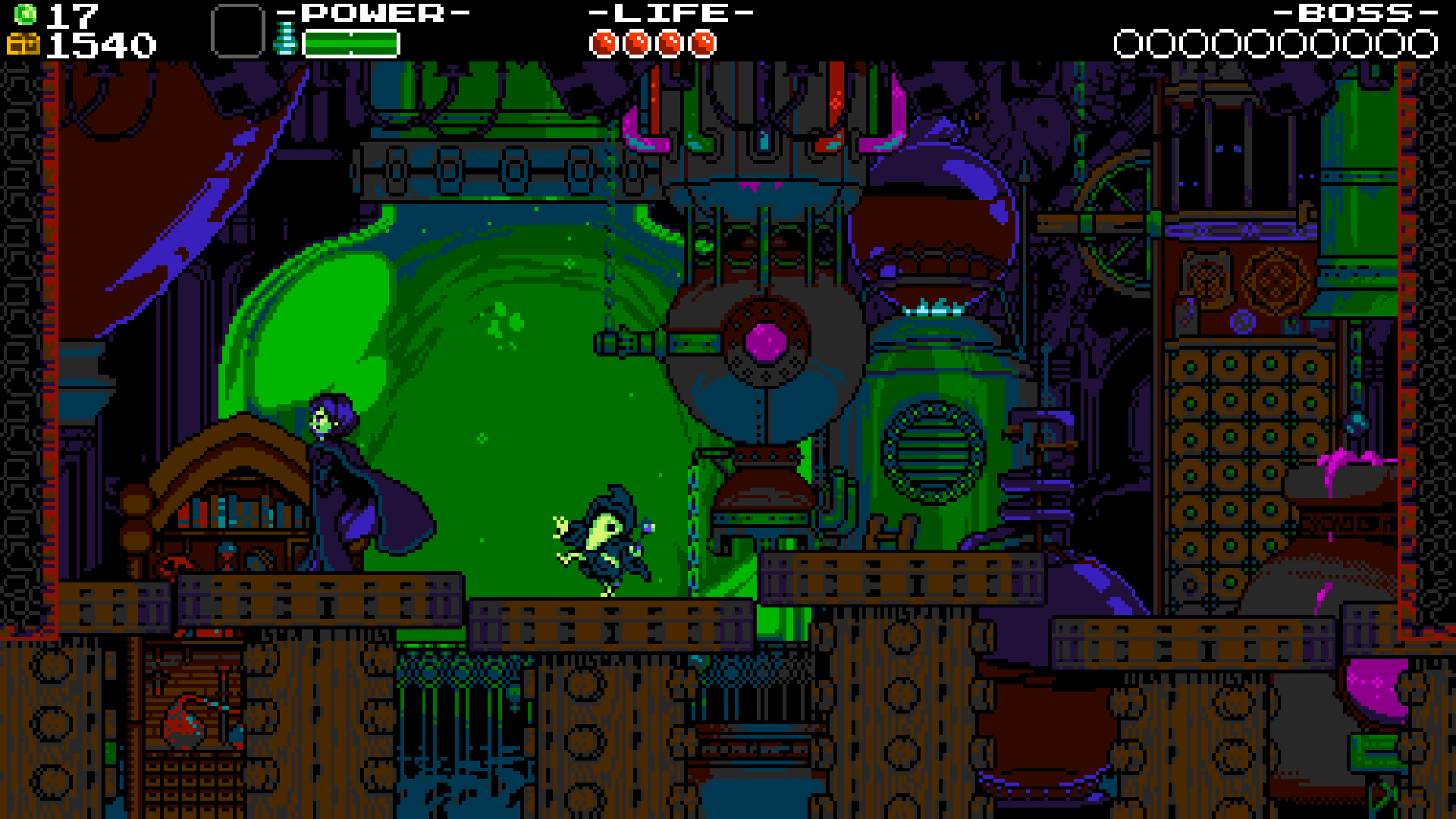Shovel Knight: Plague of Shadows – Prime your potions and become the maniacal alchemist Plague Knight in his adventure to brew the ultimate potion! Combine bomb parts to create custom loadouts. Discover new items, areas, bosses, and maybe even a bubbling romance.
